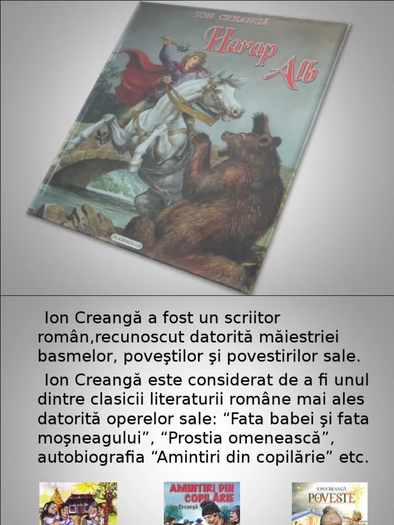 Personajele, umorul și aventurile fac din această operă una pe care nu o poți lăsa din mână. 20.05.2011 · cartea mea preferata este amintiri din copilarie, deoarece in ea este povestita viata unui copil nazdravan, in care ma regasesc si eu oarecum si a familiei acestuia. Familia acestuia era o familie modesta. În 28 septembrie 2009 | anonim explică: