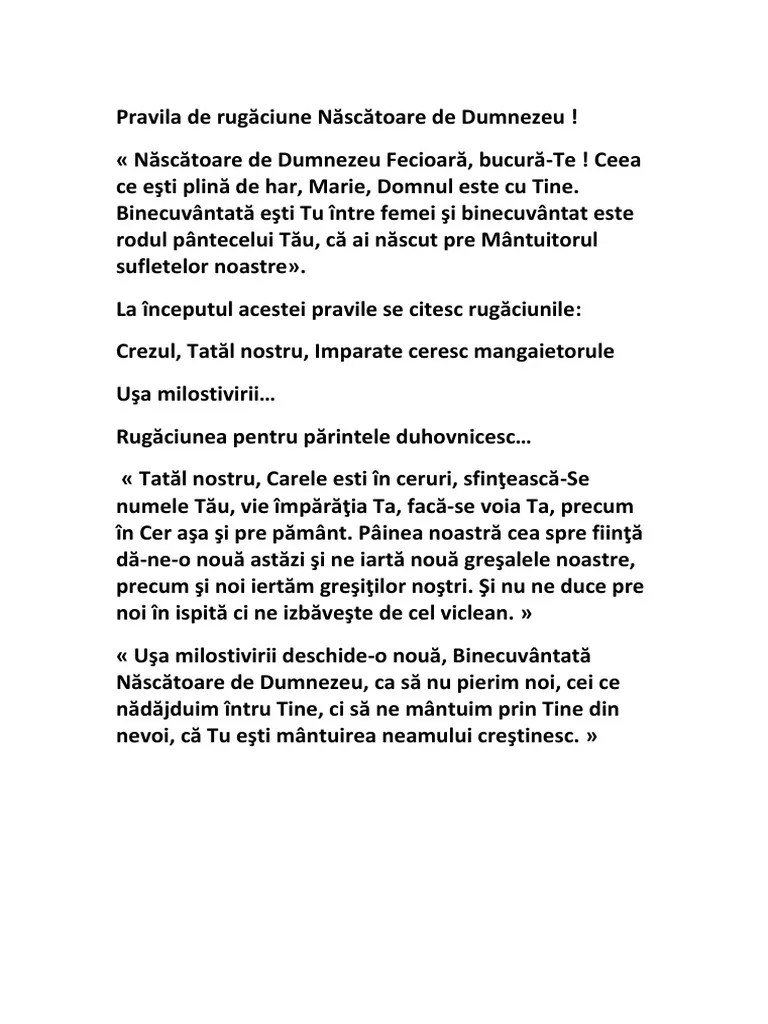 Şi acum şi pururi şi în vecii vecilor. 21.05.2012 · rugaciune catre nascatoarea de dumnezeu. Paraclisul preasfintei nascatoare de dumnezeu. Veniţi să ne închinăm împăratului nostru dumnezeu. Rugăciune către preasfânta născătoare de dumnezeu. Catre prea sfanta nascatoare de dumnezeu. Rugaciune catre domnul nostru iisus hristos. (de 3 ori) slavă tatălui şi fiului şi sfântului duh. Ceea ce esti plina de har, marie, domnul este cu tine.. Rugaciunea ultimilor stareti de la minastirea optina.